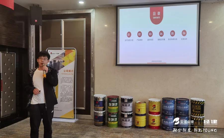 會(huì)議期間,寶塔山漆四川營(yíng)銷中心、地坪漆事業(yè)部以周到的產(chǎn)品服務(wù),向與會(huì)嘉賓和經(jīng)銷商表達(dá)了對(duì)公司水性漆、地坪漆新品品質(zhì)、健康生活和市場(chǎng)前景的高度認(rèn)可。公司研發(fā)部工程師,地坪漆產(chǎn)品經(jīng)理分別從產(chǎn)品的技術(shù)理念、應(yīng)用范圍和市場(chǎng)前景一一做了詳細(xì)解讀。